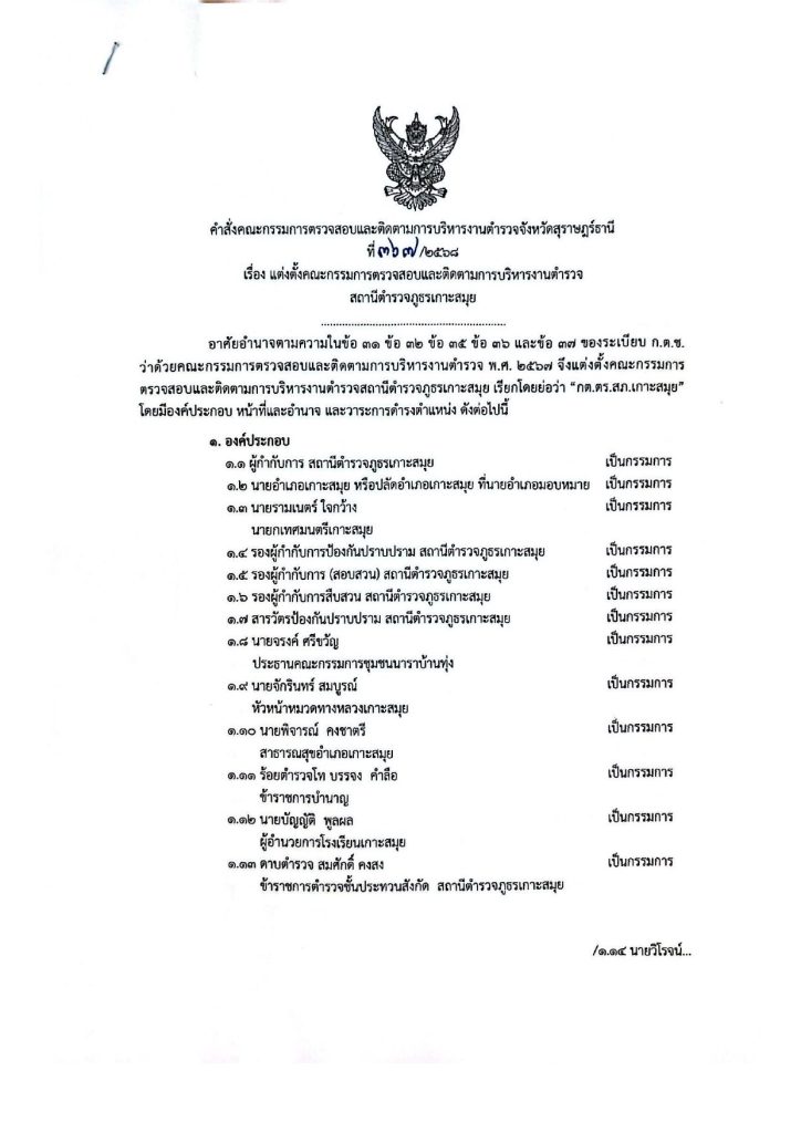 ผลการดำเนินงานของคณะกรรมการตรวจสอบเเละติดตามการบริหารงานระดับสถานีตำรวจภูธรเกาะสมุย