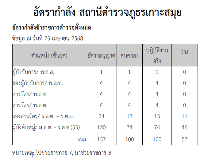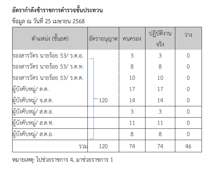 อัตรากำลังของสถานีตำรวจ